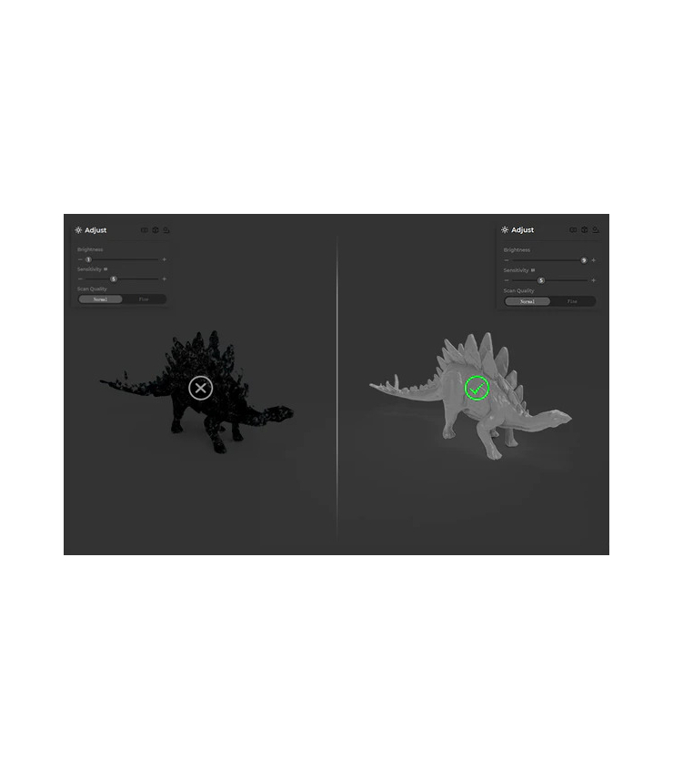 | توصیههای مربوط به سطح و مواد | برخی سطوح و مواد مانند شفاف، بازتابدهنده یا دارای مو نیاز به اسپری اسکن دارند تا نتایج بهینه حاصل شود. |