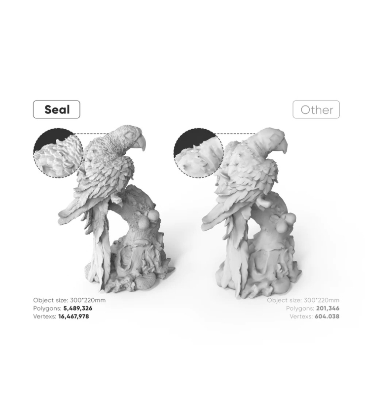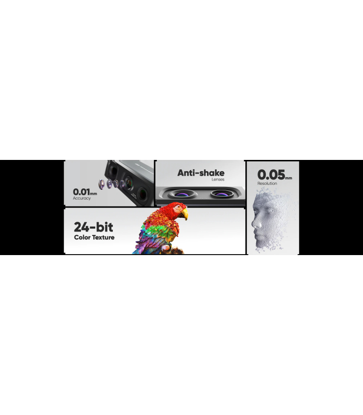 اسکنر سهبعدی 3D Maker Pro Seal ترکیبی از دقت صنعتی، سرعت بالا و فناوریهای پیشرفته نور ساختاریافته است که برای طراحی حرفهای، مهندسی، پزشکی و جواهرسازی طراحی شده. این دستگاه امکان ثبت دقیق مدلهای پیچیده و جزئیات بسیار ریز با دقت خیرهکننده ۰.۰۱ میلیمتر را فراهم میکند. اگر به دنبال بالاترین سطح جزئیات در یک ابزار قابلحمل هستید، Seal انتخاب نهایی شماست.