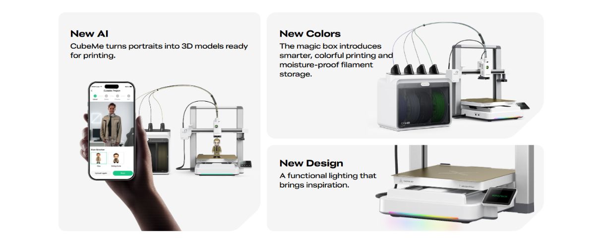| دیگر ویژگیها | سیستم هوش مصنوعی (AI Camera) برای تشخیص خطا و نظارت چاپ، نور وضعیت چاپ RGB، Input Shaping، Quick-Swap Hotend، Power Loss Recovery، سازگار با CFS Lite و CFS Mini |