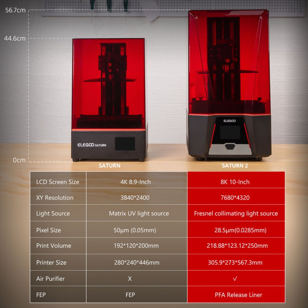 دقت پرینتر 3 بعدی ELEGOO Saturn 2 8K به واسطه استفاده از این فناوری و ماژول با دقت معادل 28.5 میکرون است که در نوع خود فوق العاده است